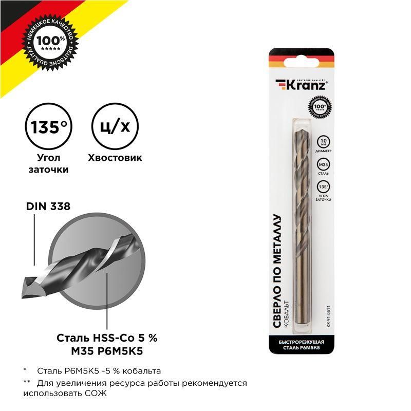 сверлопометаллу10ммкобальтстальhssco5m35p6m5k5din338блист1штkranzkr910511