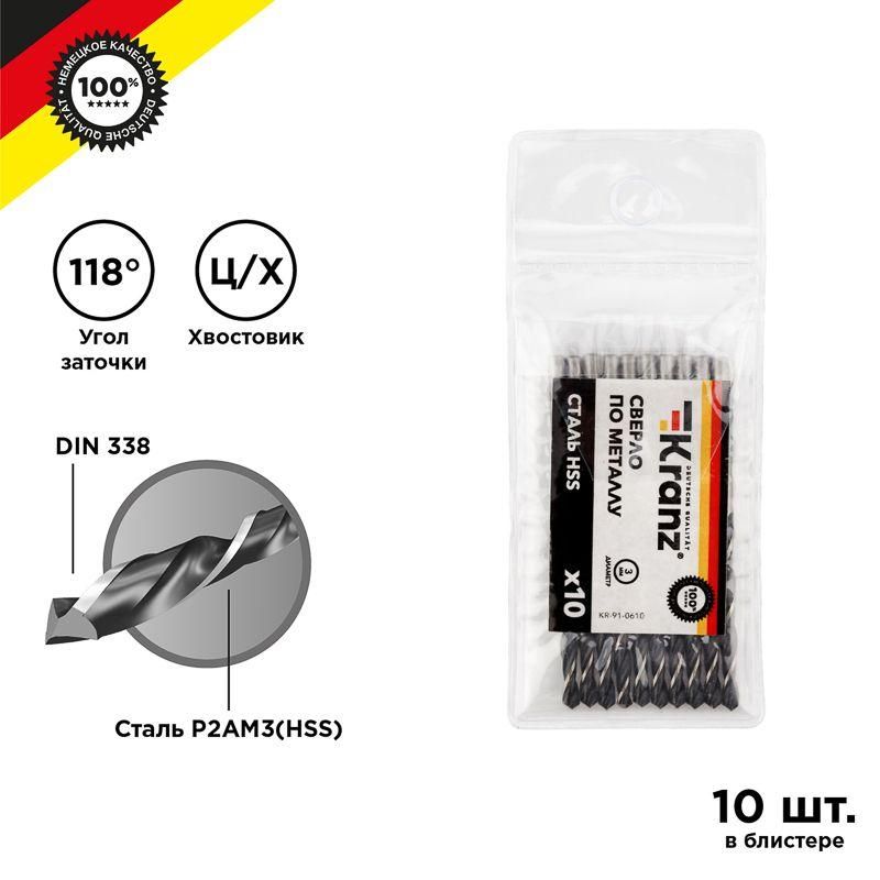 Сверло по металлу 3.0мм HSS DIN 338 (уп.10шт) Kranz KR-91-0610