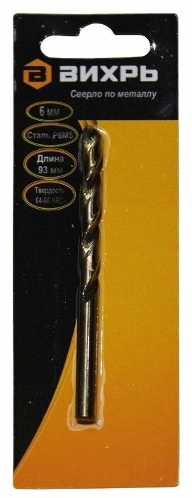 Сверло по металлу 6 мм, P6M5 (1 шт. в блистере) | 73/10/6/4 ВИХРЬ