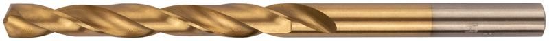 Цилиндрический хвостовик. Класс точности А1. Угол заточки 135 градусов. Вышлифованный профиль. Материал - быстрорежущая (HSS) сталь Р9М3c титановым покрытием. Упаковка - блистер.