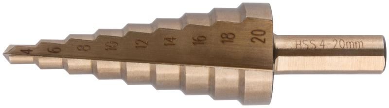Сверло ступенчатое HSS Co5% (Р6М5К5) по металлу, 9 ступеней, 4-20 мм - 36392 РОС