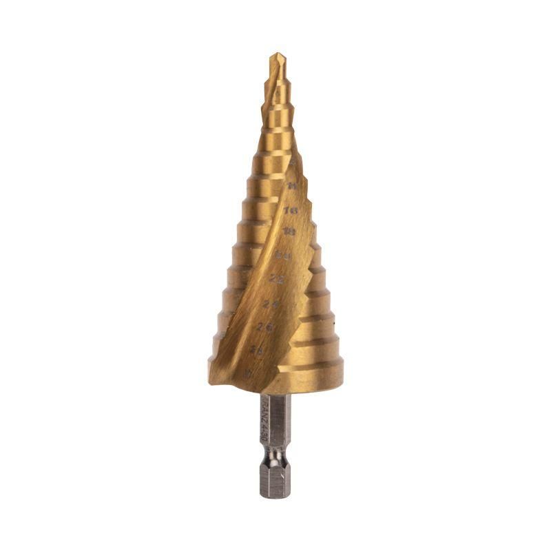 Ступенчатое сверло Kranz kr-12-6612 предназначено для быстрого сверления отверстий различного диаметра в металле, пластике и древесине без замены инструмента. Благодаря покрытию TiN и материалу Р6М5, оно сохраняет остроту даже при длительной работе, а шестигранный хвостовик обеспечивает надёжную фиксацию в любом патроне.