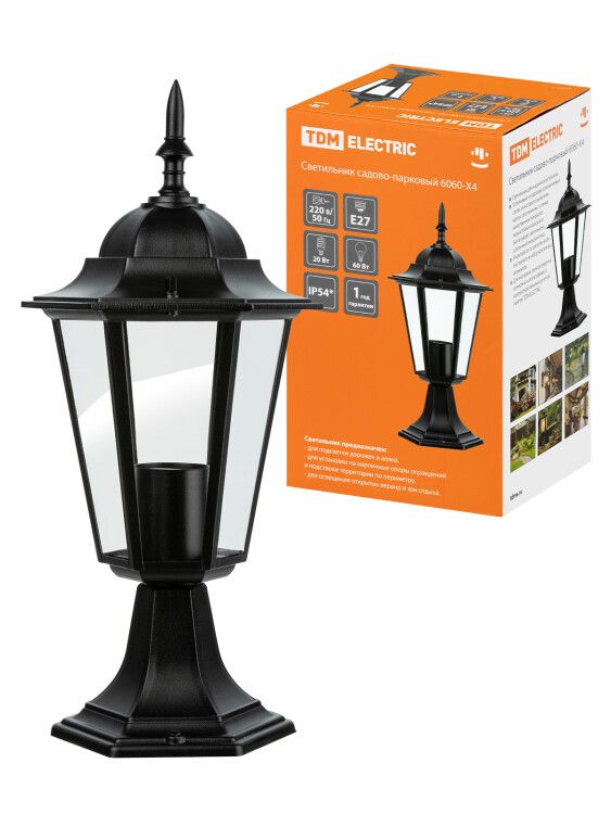 Светильник садово-парковый ЛБУ 6060-04 60Вт ЛН/КЛЛ/LED E27 IP33 шестигранник, стойка | SQ0330-0004 TDM
