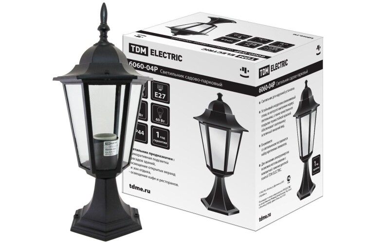 Светильник садово-парковый ЛБУ 6060-04Р 60Вт ЛН/КЛЛ/LED E27 IP33 шестигранник, стойка | SQ0330-3003 TDM не поставляется, возможно товар снят с производства, по запросу, наши инженеры помогут подобрать аналоги, замены.