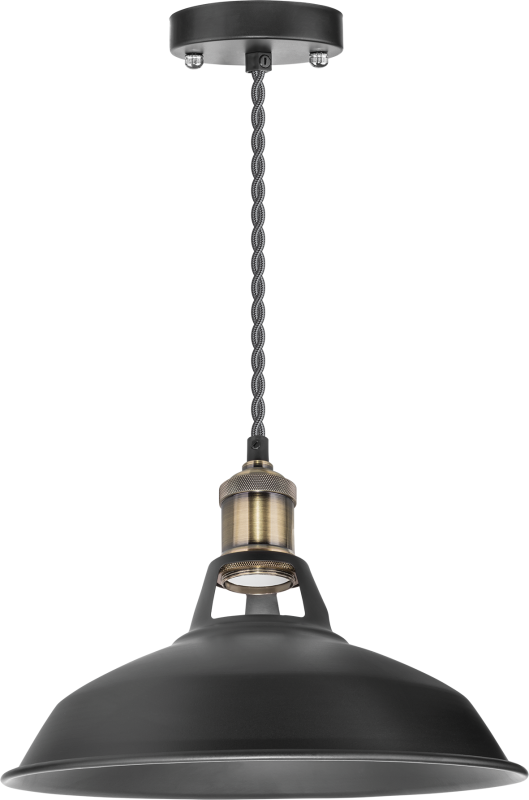 Светильник с плафоном 1.5м цоколь E27 металл черный/бронза 60Вт используется для основного и декоративного освещения. Подходит для установки в залах, кафе, барах, гостиных, кухнях, холлах и других помещениях, где важна атмосферная подсветка. Особенно эффективен в интерьерах в стилях лофт, ретро и винтаж. Лампа накаливания создаёт тёплый, равномерный свет, усиливающий уютную эстетику.