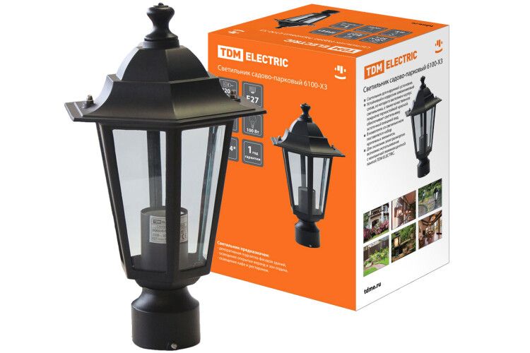 Светильник садово-парковый ЛТУ 6100-03 100Вт ЛН/КЛЛ/LED Е27 IP33 черный шестигранник | SQ0330-0008 TDM