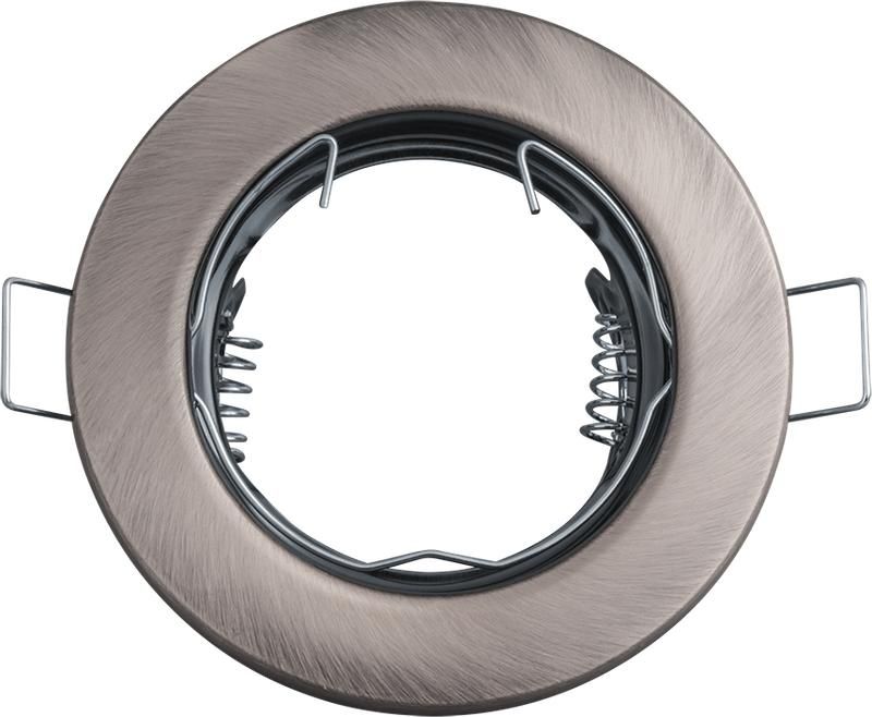Светильник точечный GU5.3 NFS 93 014 NFS-R1-004-MR16 сатин-хром устанавливается в подготовленное отверстие диаметром 80 мм. Крепится с помощью пружинных зажимов - без болтов и дополнительных крепежей. Для работы подключается напрямую к сети 230 В через обычную проводку. Учитывайте, что он не совместим с диммерами - яркость нельзя изменить. Монтаж возможен только в сухих помещениях из-за класса защиты IP20.