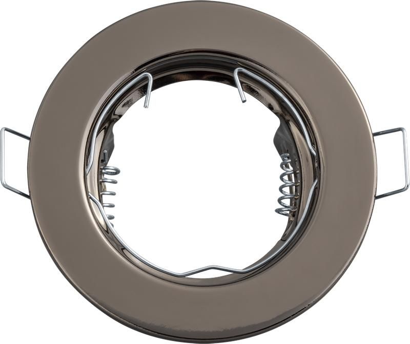 Светильник точечный GU5.3 NFS 93 015 NFS-R1-005-MR16 (Черный хром) монтируется в подготовленное отверстие диаметром 80 мм. Кабель подключается напрямую к сетевому проводу через клеммы внутри корпуса. Установка выполняется с помощью пружинных зажимов - они фиксируют устройство в потолке без дополнительных креплений. Для работы необходима лампа с цоколем GU5.3 и подходящим световым потоком - сама лампа в комплект не входит.