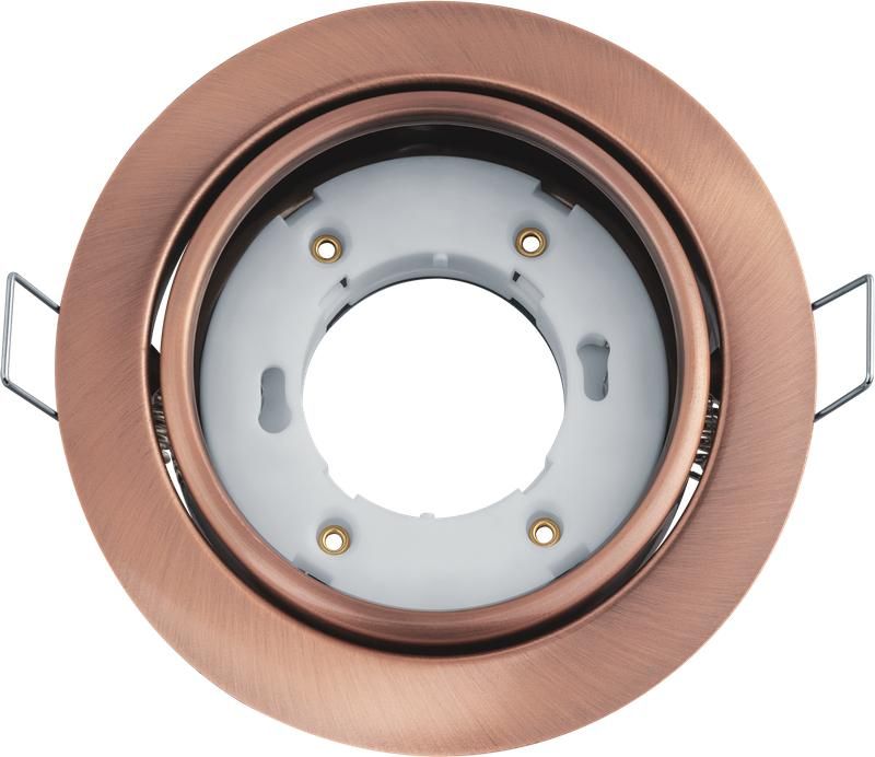 Светильник встраиваемый поворотный GX53 черненая медь NGX 93 035 NGX-R5-006-GX53 - компактный точечный светильник для встраивания в потолочные конструкции, где требуется направленное освещение с возможностью регулировки угла падения света. Подходит для коммерческих и жилых интерьеров, совместим с LED-лампами на цоколе GX53.