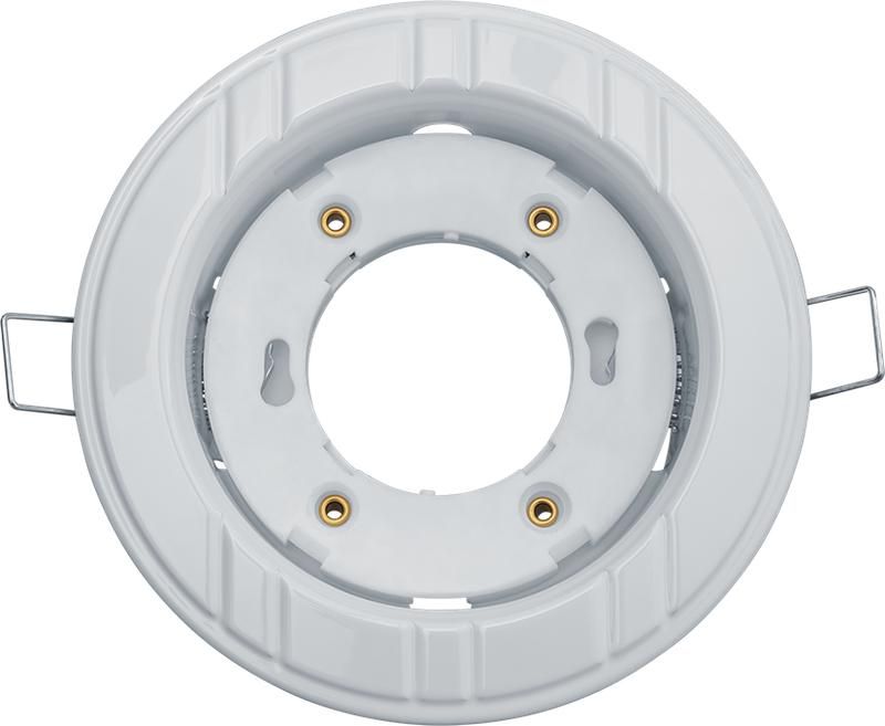 Светильник NGX 93 044 NGX-R7-001-GX53 рассчитан исключительно на использование с лампами цоколя GX53. Установка выполняется путём вставки корпуса в подготовленное отверстие диаметром 115 мм. Кабель подводится снизу через штатный вход для провода. Для надёжного крепления рекомендуется использовать прилагаемые пружинные зажимы - они обеспечивают удержание без дополнительных крепёжных элементов. Монтаж возможен только в сухих помещениях, так как степень защиты IP20 не допускает воздействия влаги.
