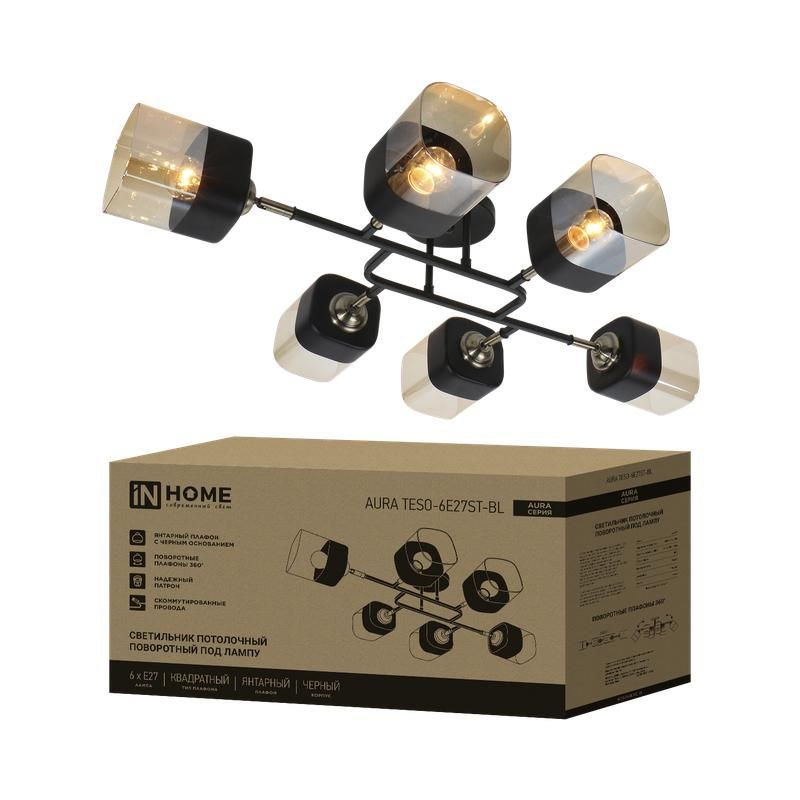 | Светильник AURA TESO-6E27ST-BL 6хE27 потолочн. поворотн.; плафоны янтарные/корпус черн. IN HOME 4690612063560 | 24.02.2026 | 573 шт. | 3 034,98 ₽ | шт. | от 8 дней |
