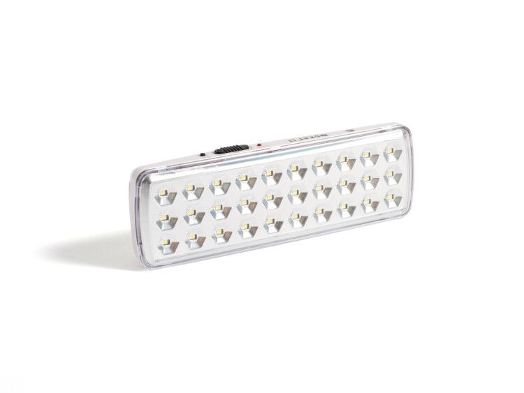 Светильник аварийного освещения Бастион 2452 - автономный источник света с литий-ионным аккумулятором на 1200 мАч и 30 светодиодами, предназначенный для обеспечения эвакуационного освещения при отключении основного питания. Подходит для установки в офисах, торговых центрах, школах и других общественных зонах.