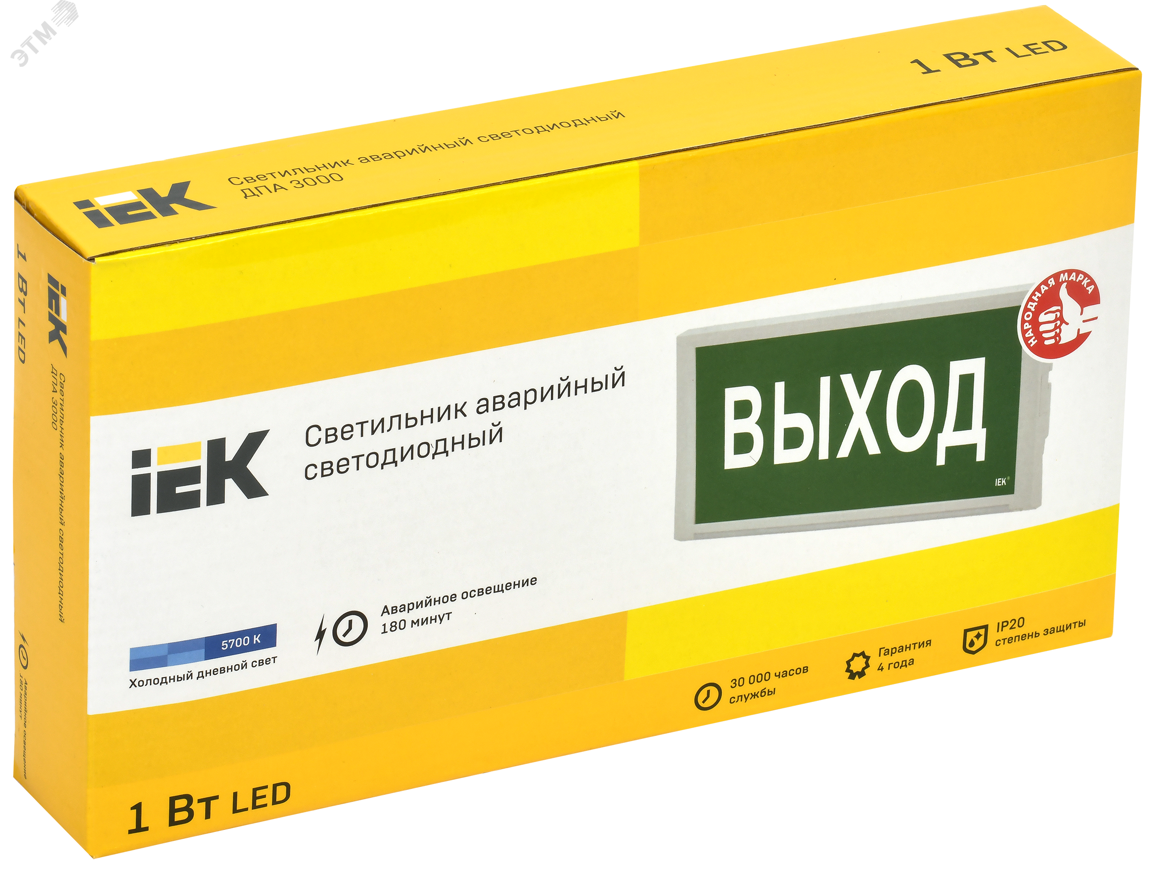 Светильник светодиодный аварийный ДПА 3000 постоянного/непостоянного действия 3 часа IP20 от IEK - устройство для обеспечения аварийного освещения и указания путей эвакуации в зданиях. Модель сочетает функции антипанического и эвакуационного освещения, работает от встроенного аккумулятора LiFePO₄ и рассчитана на 3 часа непрерывной работы в аварийном режиме.