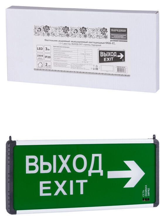 | Светильник аварийный эвакуационный светодиодный ССА-02, 1,5 ч, двустор, ВЫХОД-EXIT стрелка, Народный | SQ0349-0010 | TDM | 27.02.2026 | Под заказ | 697,37 ₽ | шт. | от 30 дней |