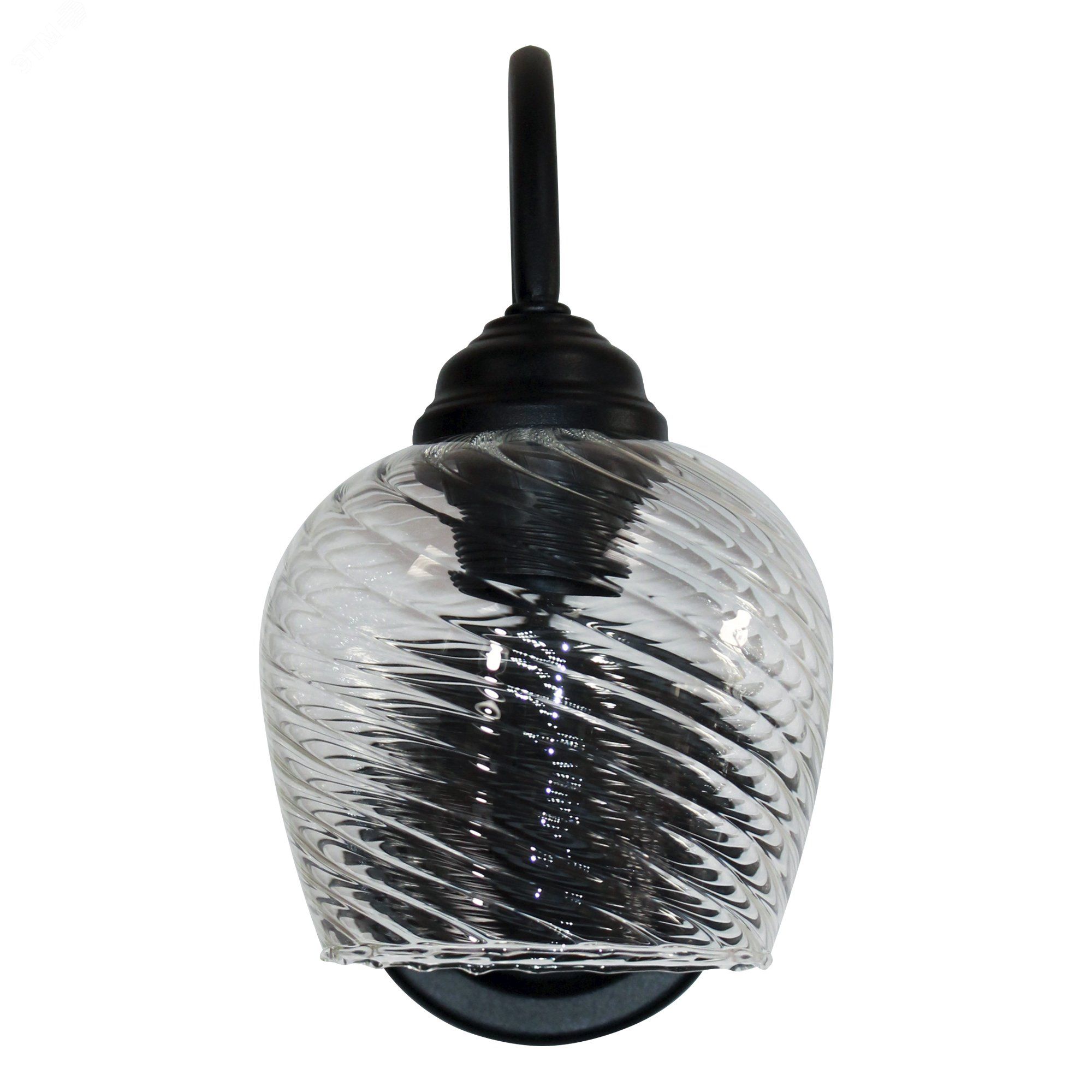 Светильник 511 черный муар (плафон 8270) НББ 01-60-156 Е27 ИУ - настенный светильник серии «Берта» от ЭЛЕТЕХ, предназначенный для равномерного освещения интерьеров жилых и служебных помещений. Матовый черный корпус и прозрачный стеклянный плафон обеспечивают мягкое, направленное освещение, подходящее для зон отдыха, коридоров и спален.