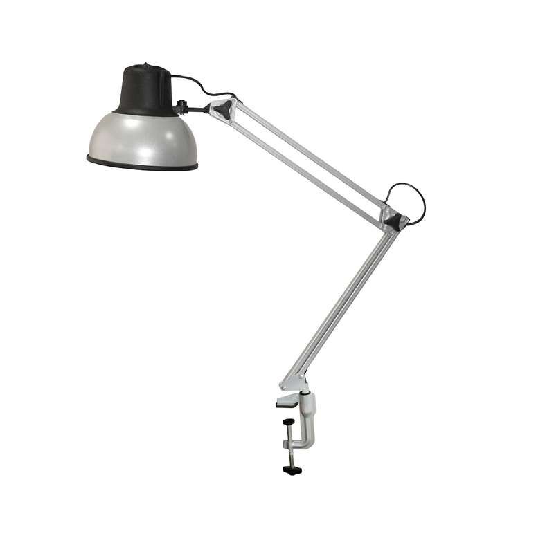 Светильник настольный на струбцине 60 Вт цоколь Е27 серебристый предназначен для точечной подсветки рабочих поверхностей там, где необходимо мобильное и регулируемое освещение. Он используется в мастерских, ремонтных участках, лабораториях, на сборочных линиях и в домашних условиях - например, для работы за чертежным столом, ремонта техники или ювелирных операций.