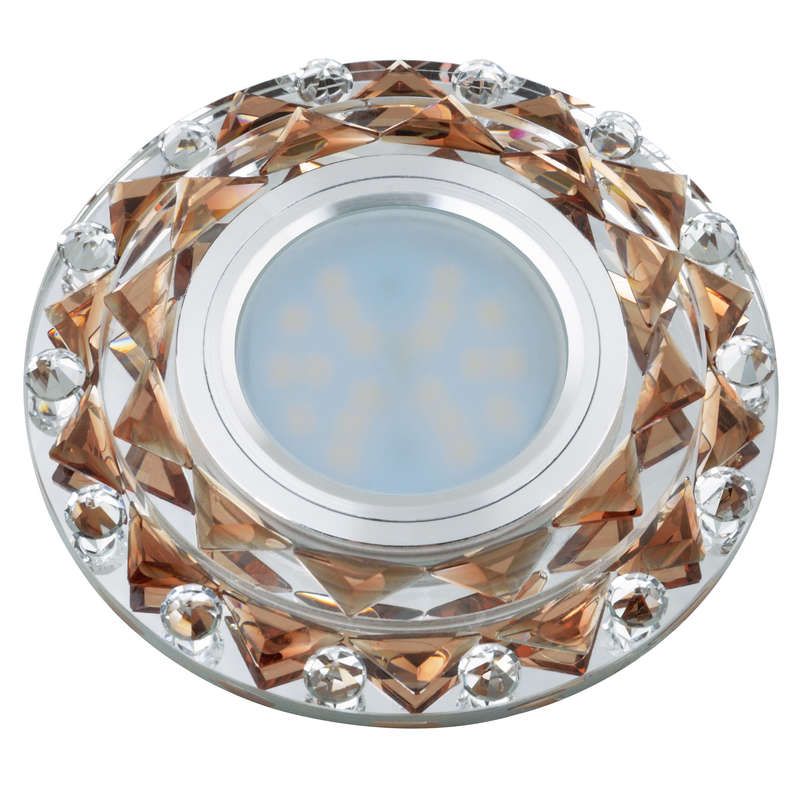 Светильник декоративный встраиваемый "Luciole" без лампы GU5.3 доп. светодиод. подсветка 3Вт основание металл. цвет хром. отделка стекло коричн. Fametto UL-00002713