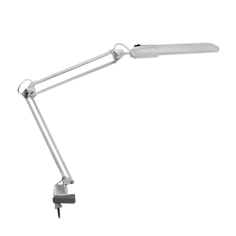 Светильник настольный на струбцине с электронным пускорегулирующим аппаратом 11 Вт с лампой компактной люминесцентной 2G7 серии Трансвит устанавливается за счёт регулируемой струбцины с зажимом до 50 мм. Лампа заменяется самостоятельно - достаточно вынуть старую 2G7 и вставить новую. ЭПРА уже встроен, внешних проводов для подключения нет - устройство включается прямо в розетку через шнур с вилкой (шнур в комплекте).