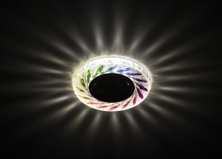Светильник точечный встраиваемый декоративный с подсветкой MR16 мультиколор от ЭРА (артикул б0028090) - компактный LED-прибор с RGB-подсветкой для создания атмосферного освещения в интерьере. Подходит для встраивания в потолки, мебель и другие поверхности, где важна эстетика и равномерное распределение света.