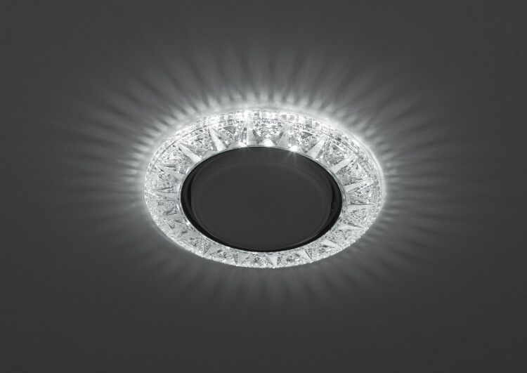 Светильник точечный встраиваемый декоративный с прозрачным корпусом и светодиодной подсветкой GX53 15Вт предназначен для внутреннего освещения жилых и общественных помещений. Подходит для установки в кухнях, гостиных, спальнях, коридорах и детских комнатах. Может использоваться как основное освещение в малых помещениях или как акцентное - для выделения зон отдыха, рабочих мест или декора. Не рекомендован для влажных зон, таких как ванные комнаты или бассейны.