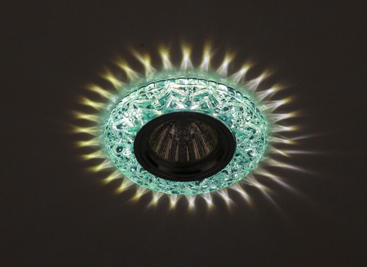 Светильник точечный встраиваемый декоративный с подсветкой MR16 голубой от ЭРА - компактный источник света для создания направленного и декоративного освещения в жилых помещениях. Артикул б0028087 подходит для установки в натяжные, гипсокартонные и другие типы потолков, где важна эстетика и равномерное распределение света.