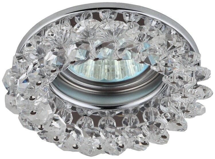 Светильник декоративный круглый с мелкими хрусталиками хром/прозрачный DK16 CH/WH 50Вт MR16 GU5.3 от бренда ЭРА - встраиваемый точечный светильник с декоративной окантовкой и светодиодной лампой MR16, предназначенный для создания мягкого акцентного или базового освещения в жилых интерьерах.