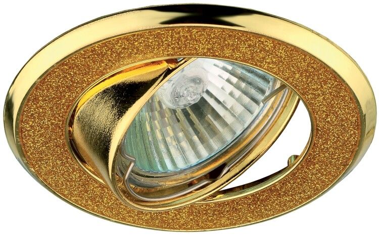 Светильник точечный встраиваемый декоративный круглый со стеклянной крошкой MR16, 12V/220V, 50W, золото/золото от бренда ЭРА - компактный источник света для встраивания в потолок или стену, создающий направленный и равномерный свет за счёт рассеивателя с декоративной стеклянной крошкой. Артикул c0043760 подходит для бытового освещения в интерьерах от минимализма до классики.