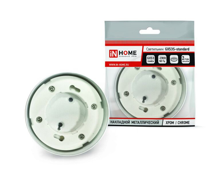 Светильник накладной GX53S-standard RW металл под лампу GX53 230В белый - это компактный настенно-потолочный источник света с металлическим корпусом, предназначенный для установки в подвесные и натяжные потолки. Бренд IN HOME предлагает эту модель как часть серии точечного освещения GX53S-standard; артикул 4690612012193 соответствует модели с белым корпусом и цоколем GX53. Подходит для общего и декоративного освещения в помещениях различного типа.