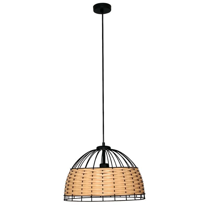 Светильник подвесной оплетенный черный муар НСБ 01-60-180 ИМ от ЭЛЕТЕХ - это декоративный источник света с плафоном из имитации ротанга и металлическим корпусом, предназначенный для создания уютного освещения в интерьерах в стиле Кантри или Скандинавский. Подходит для установки в жилых комнатах, кафе и других помещениях с невысокой влажностью.