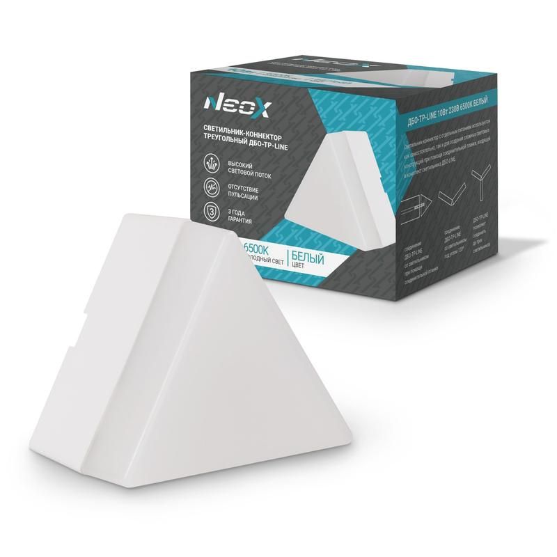Светильник-коннектор треугольный ДБО-ТР-LINE 10Вт 6500К 1000лм 230В белый - это не просто источник света, а элемент системы соединения для создания геометрических световых композиций. Применяется совместно с другими светильниками серии ДБО-Line от бренда NEOX для формирования линий, углов и фигур в интерьерах.