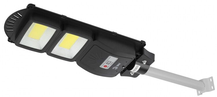 Светильник консольный на солнечной батарее ЭРА (артикул б0046794) - автономное уличное освещение с энергонезависимой системой питания, подходящее для дворов, тротуаров, парковых зон и объектов без доступа к сети 220 В. Устройство сочетает в себе солнечную батарею, датчик движения, пульт ДУ и светодиоды COB с высокой эффективностью.