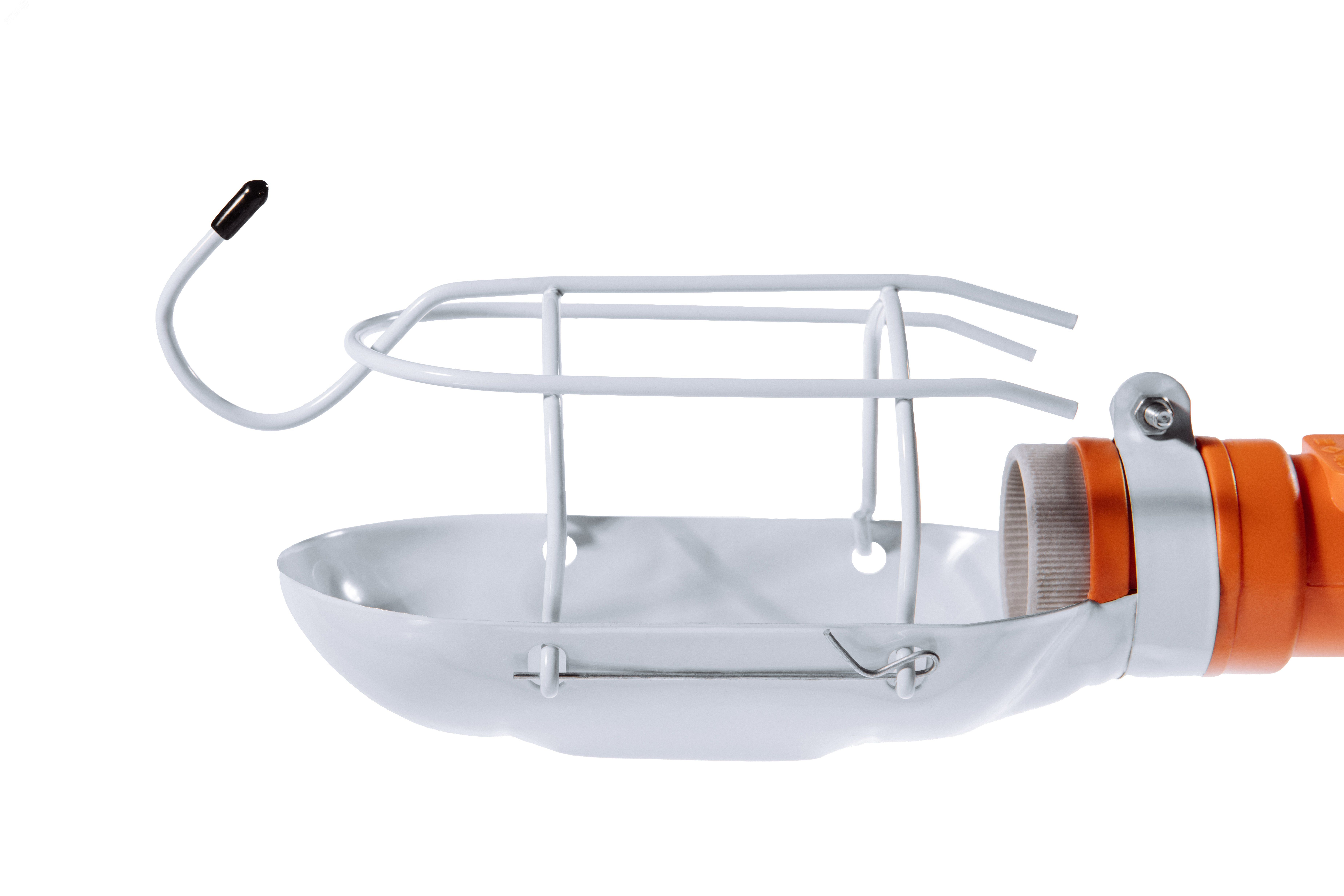 Светильник переносной 60 Вт 15 м с выключателем с решеткой ПВС 220 В (РВО) ЛСУ-1 не требует сложного монтажа. Он имеет встроенную вилку и выключатель на кабеле - достаточно включить в розетку. Крепление отражателя выполнено через стальной хомут, а не пластиковые винты, что исключает деформацию при нагрузке. На задней части отражателя есть площадка для установки на магнитную поверхность - можно закрепить на металлических конструкциях, станках или щитах. Крючок из проволоки 3 мм с резиновым колпачком позволяет подвесить светильник на высоте до 25 кг - например, на крюк в потолке или на балке.