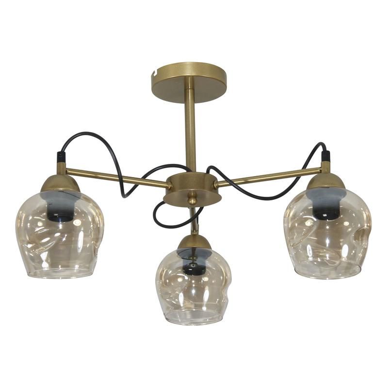 Светильник потолочный НСБ 01-3х60-228 Е27, плафон 8268, золотистый - трёхрожковый потолочный светильник серии Мирра от ЭЛЕТЕХ с плафонами из стекла и металлическим корпусом, предназначенный для равномерного освещения жилых помещений площадью до 15 м². Артикул 1005405270 подходит для замены старых люстр, особенно там, где важна эстетика и мягкое рассеянное освещение.