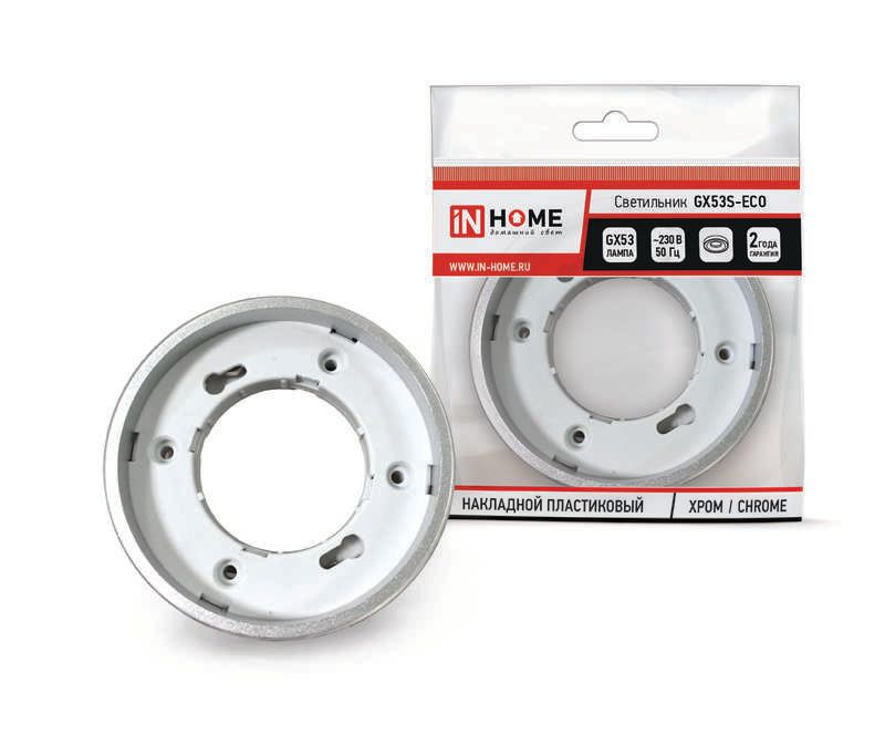 Светильник точечный GX53S-ECO GX53 230В накладной пластик. хром. IN HOME 4690612012186