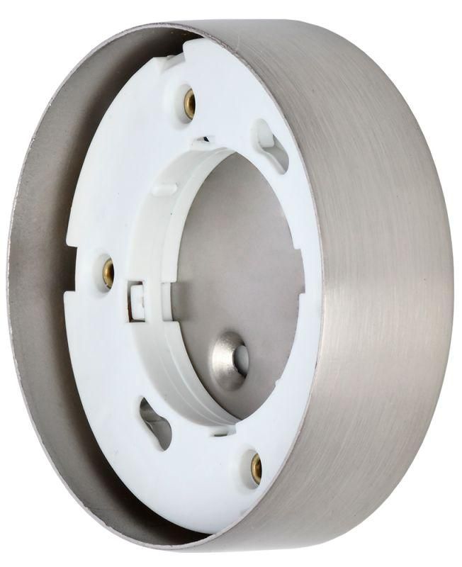 Светильник накладной под лампу GX53 хром крепится прямо на поверхность с помощью встроенной монтажной скобы. Для установки нужен только шуруповерт и два самореза. Провода подводятся снизу - удобно при монтаже на гипсокартон или деревянные потолки. Кабель можно протянуть через отверстие в корпусе. Монтаж допускается на любые твёрдые поверхности: бетон, металл, древесина, гипсокартон. Обязательно соблюдайте посадочный диаметр 82 мм - не используйте для отверстий меньшего размера. Нельзя монтировать в сырых помещениях, ванных комнатах, на улице - IP20 не обеспечивает защиту от влаги.