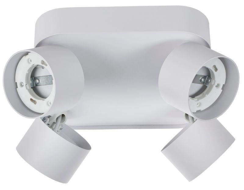 Светильник накладной потолочный 4хGX53 белый 230В IP20 предназначен для создания мягкого, рассеянного света в помещениях с ограниченным пространством. Подходит для использования в спальнях, гостиных, коридорах, офисах и магазинах. Благодаря четырем поворотным плафонам позволяет направлять свет в нужную зону - например, на рабочую поверхность, картину или зону отдыха. Эффективно используется там, где важна визуальная легкость интерьера и замена массивным люстрам.