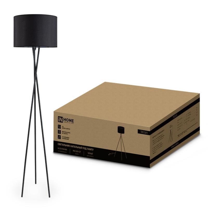 Светильник напольный под лампу ТНО 04-Е27Ч 230В черный абажур, черная тренога IN HOME - 4690612048239