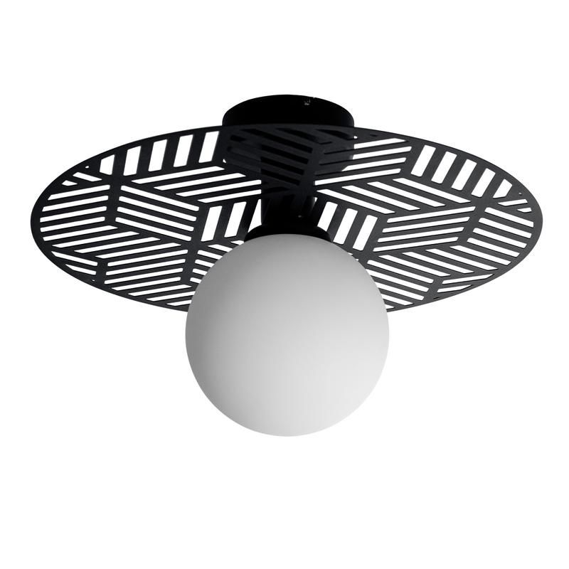 - Материал плафона: стекло (опаловое, ручной выдувки) + металл (лазерная резка) - создаёт мягкий рассеянный свет