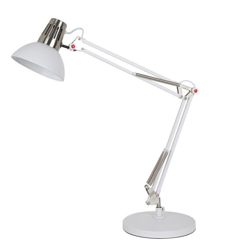 Светильник настольный Camelion KD-431A - компактный источник света для рабочих зон в домашних условиях, выполненный из металла с хромированными деталями и регулируемой двухзвенной стойкой. Поддерживает лампы до 40 Вт с цоколем E27, включая светодиодные, и оснащён встроенным выключателем.