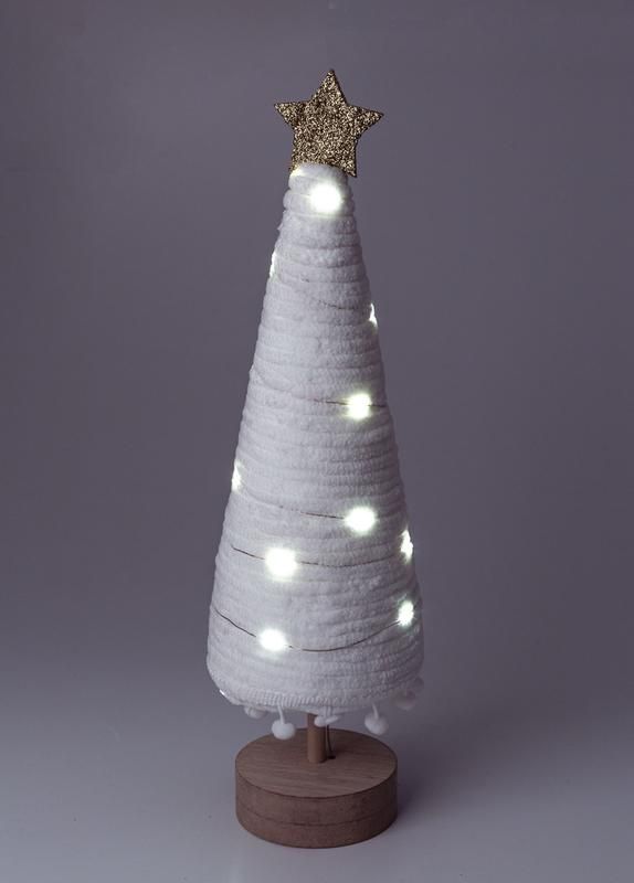 Светильник настольный "Елка" дизайн 1 (деревянное основание и звезда) 20LED плюш 11.5х38.5см тепл. бел. КОСМОС KOC_TAB-B104