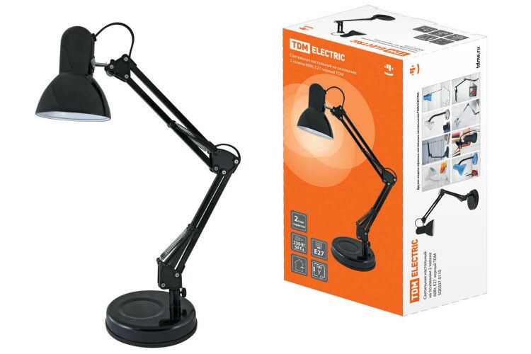 Светильник настольный на основании 2 колена 60Вт ЛН/КЛЛ/LED Е27 черный | SQ0337-0110 TDM
