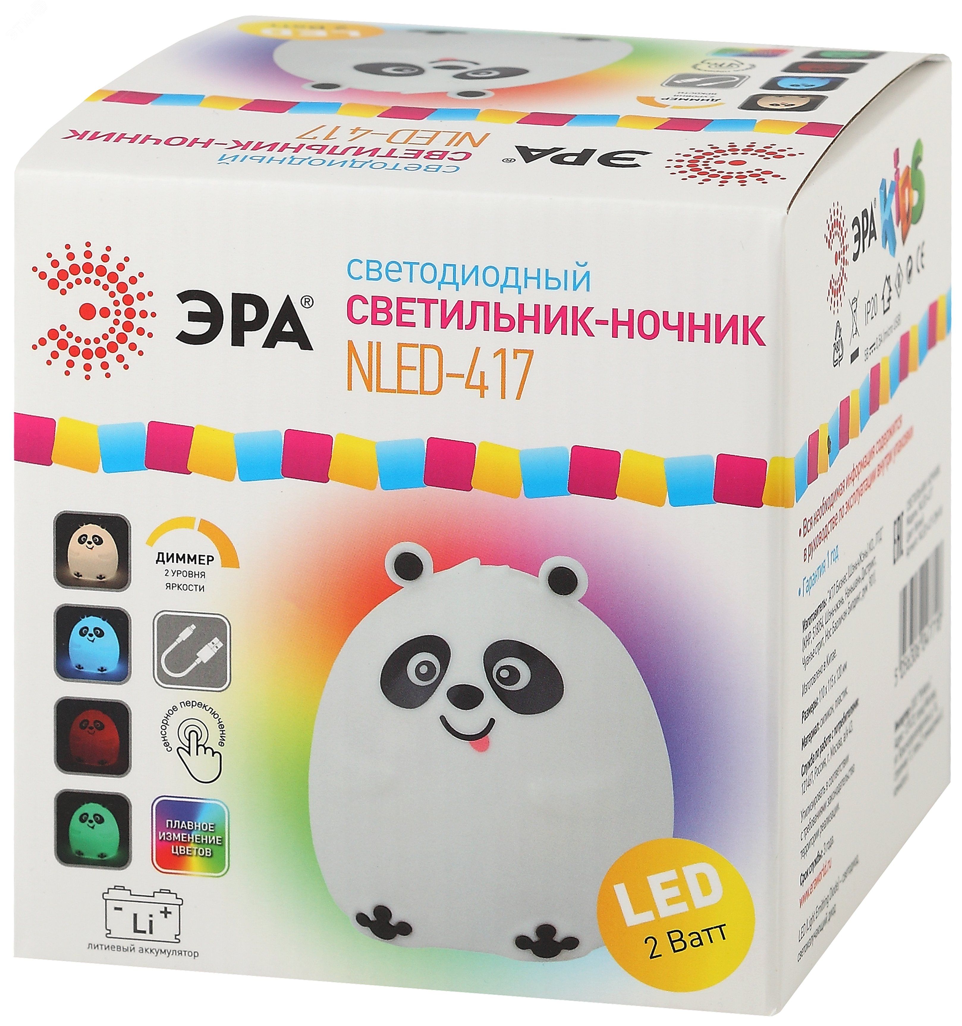 Светильник настольный 2 Вт белый ЭРА NLED-417-2W-W - это компактный LED-ночник с встроенным аккумулятором и USB-зарядкой, предназначенный для мягкого освещения в детской, на балконе или в спальне. Его форма в виде плюшевой панды делает устройство одновременно функциональным и успокаивающим элементом интерьера.