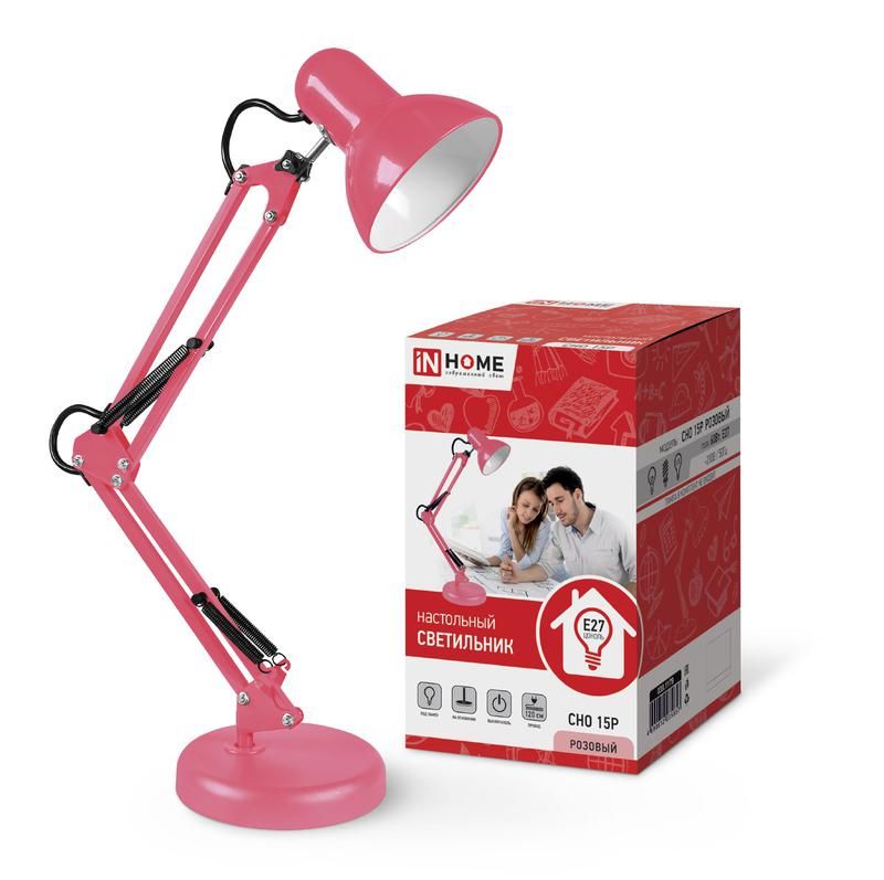 Светильник настольный СНО 15Р 60Вт E27 230В под лампу на основании роз - это компактный и регулируемый источник локального освещения от бренда INHOME, подходящий для работы за столом, чтения или творческих задач. Модель сочетает надёжную конструкцию, гибкую настройку направления света и совместимость со стандартными лампами E27.