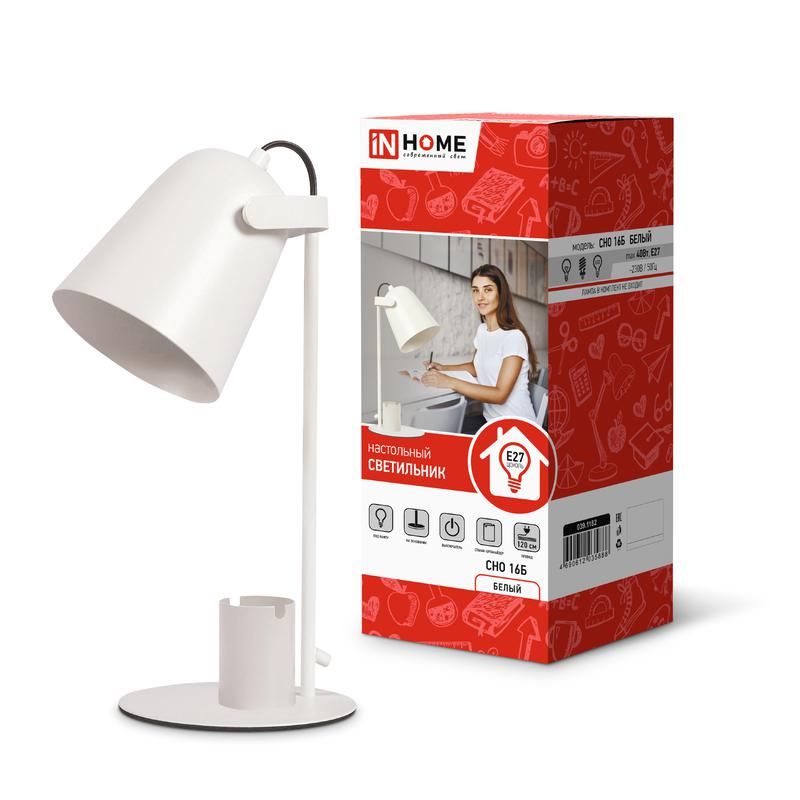 Светильник настольный СНО 16Б 40Вт E27 230В под лампу на основании с органайзером бел. (кор.) IN HOME 4690612035888