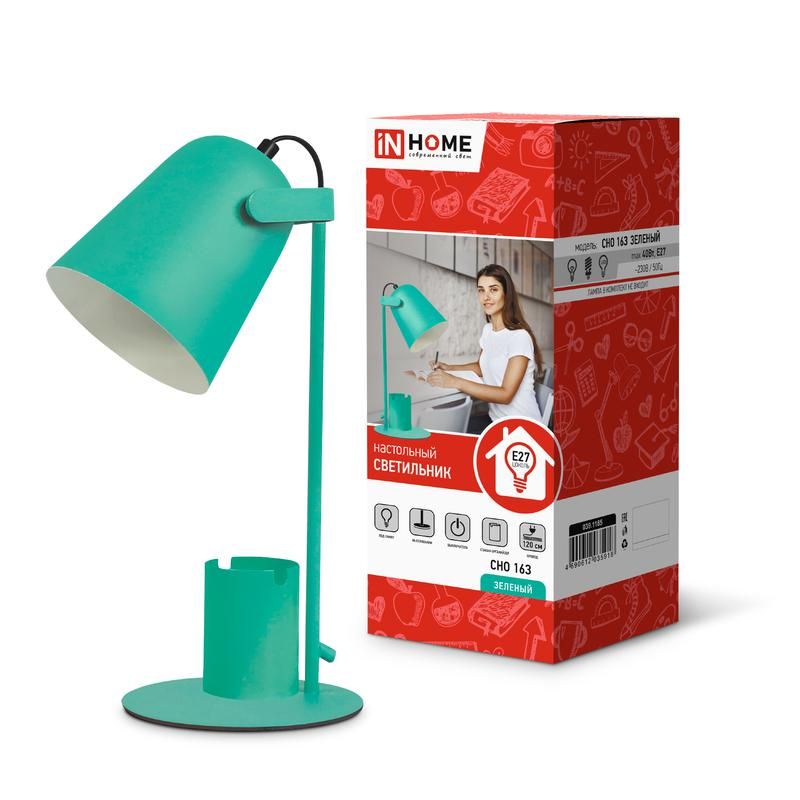 Светильник настольный СНО 16З 40Вт E27 230В под лампу на основании с органайзером зел. (кор.) IN HOME 4690612035918
