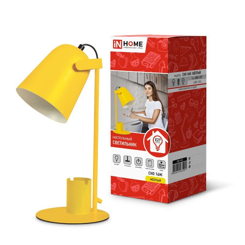 Светильник настольный 40Вт E27 230В с органайзером желтый СНО 16Ж от IN HOME сочетает функциональное освещение и место для хранения мелочей - идеальное решение для рабочего стола, домашнего офиса или учебного уголка.