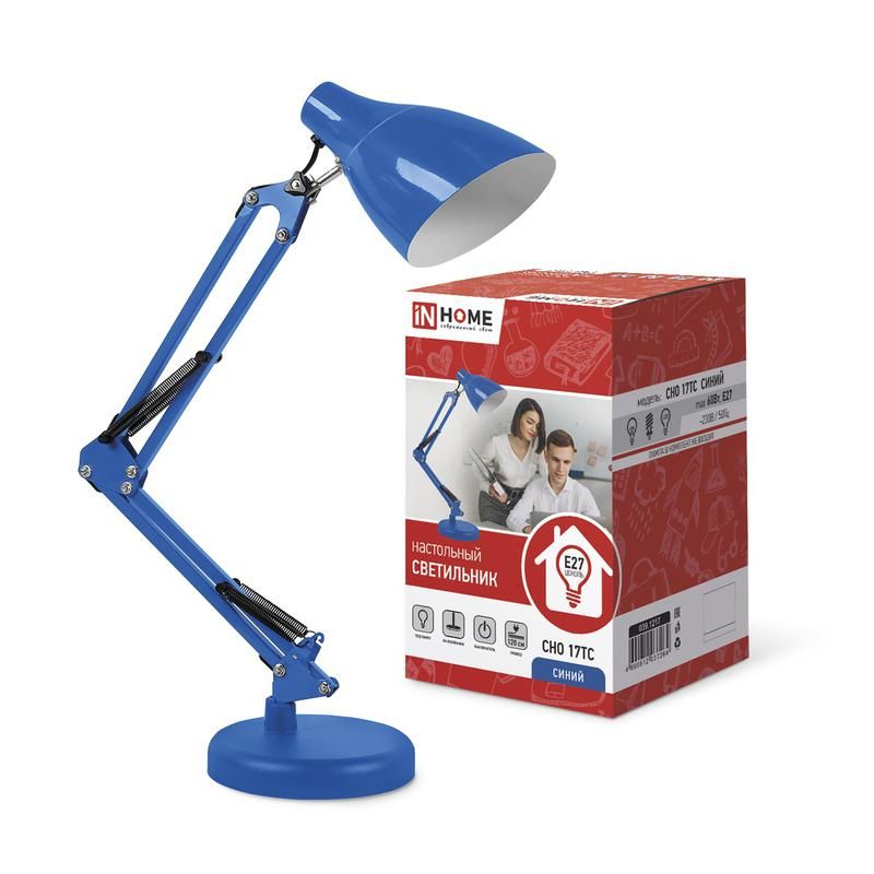 Светильник настольный СНО 17ТС 60Вт E27 230В под лампу на основании син. (кор.) IN HOME 4690612037264