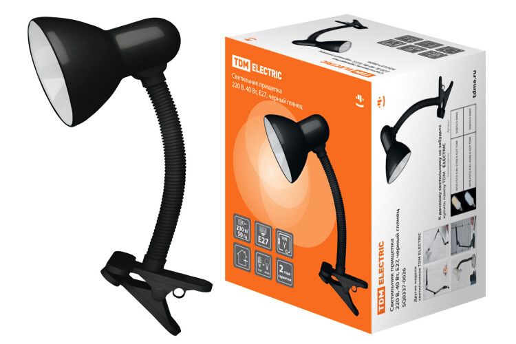 Светильник настольный прищепка 40Вт ЛН/КЛЛ/LED Е27 черный глянец | SQ0337-0026 TDM
