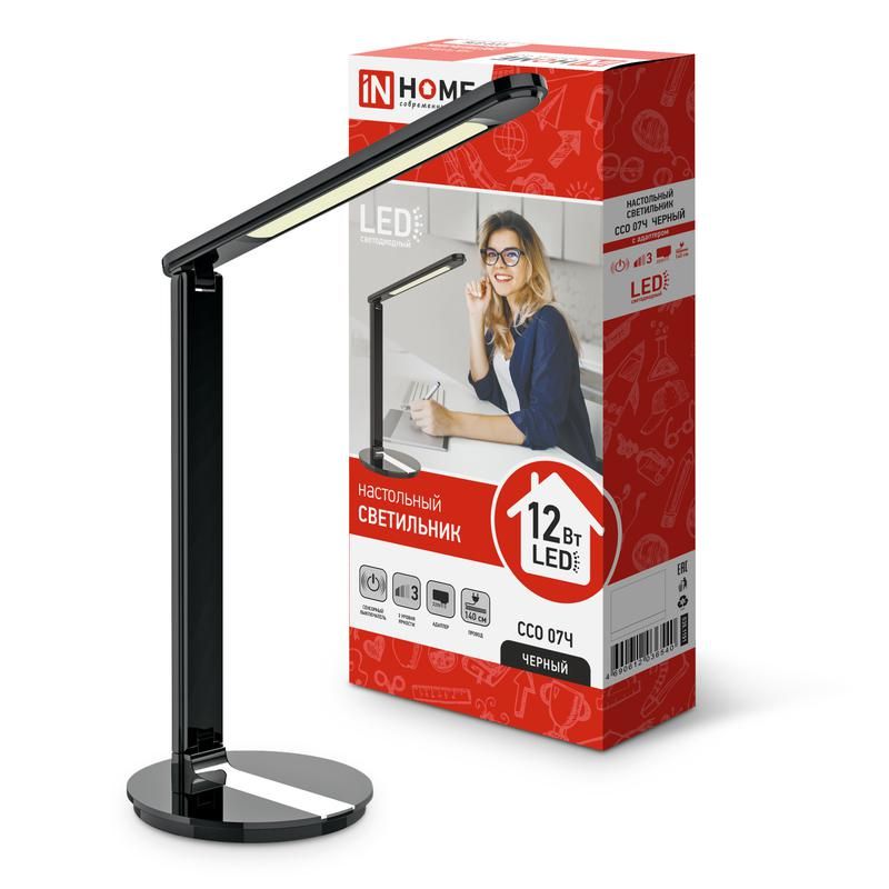 Светильник светодиодный настольный ССО 07Ч 12Вт 3000-6500К 600лм сенсор-диммер с адаптером черн. IN HOME 4690612036540