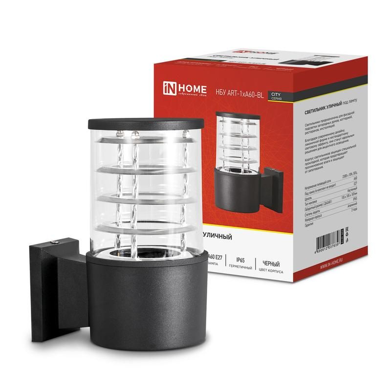 Светильник уличный настенный односторонний E27 230В IP65 алюминий черный под лампу A60 серии CITY, НБУ - это надежное решение для фасадного освещения зданий, совмещающее простую конструкцию, высокую степень защиты и совместимость с популярными лампами E27. Производитель IN HOME предлагает этот светильник как часть серии CITY, ориентированную на долговечность и эстетику.